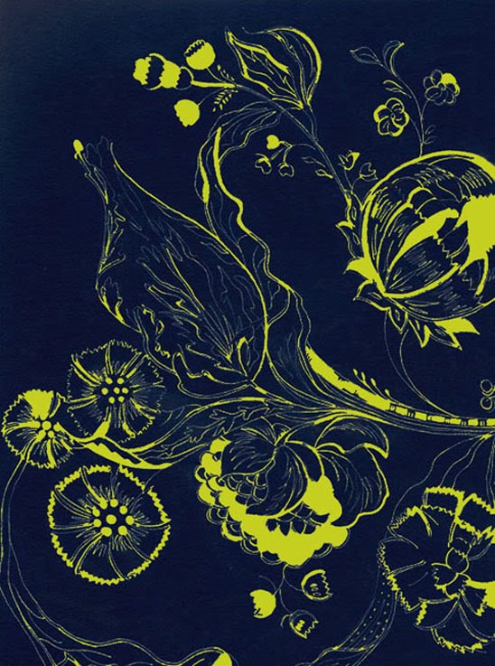 This is one of the drawings inspired by the printed textiles exhibits at the V&A in London. I then digitally manipulated some of the drawings,...this is definately my favourite!